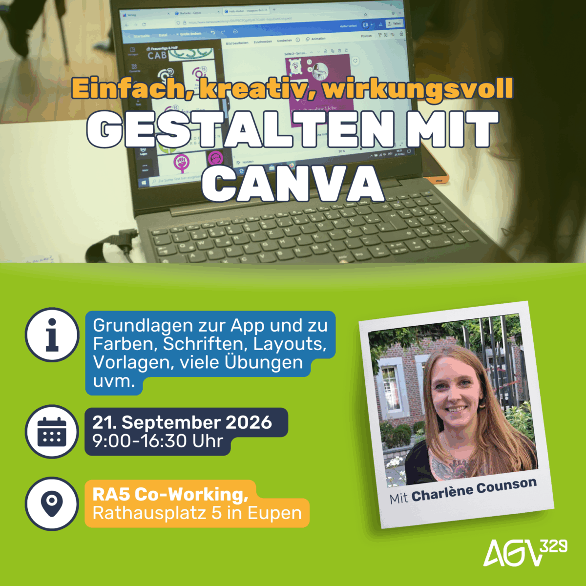 Vorlagen, Markenfarben und hilfreiche Tipps sorgen dafür, dass Designs künftig schneller, sicherer und einheitlicher erstellt werden können. Der Workshop ist bewusst praxisorientiert und niedrigschwellig angelegt, mit viel Raum zum Ausprobieren, Nachfragen und Lernen mit Spaß.